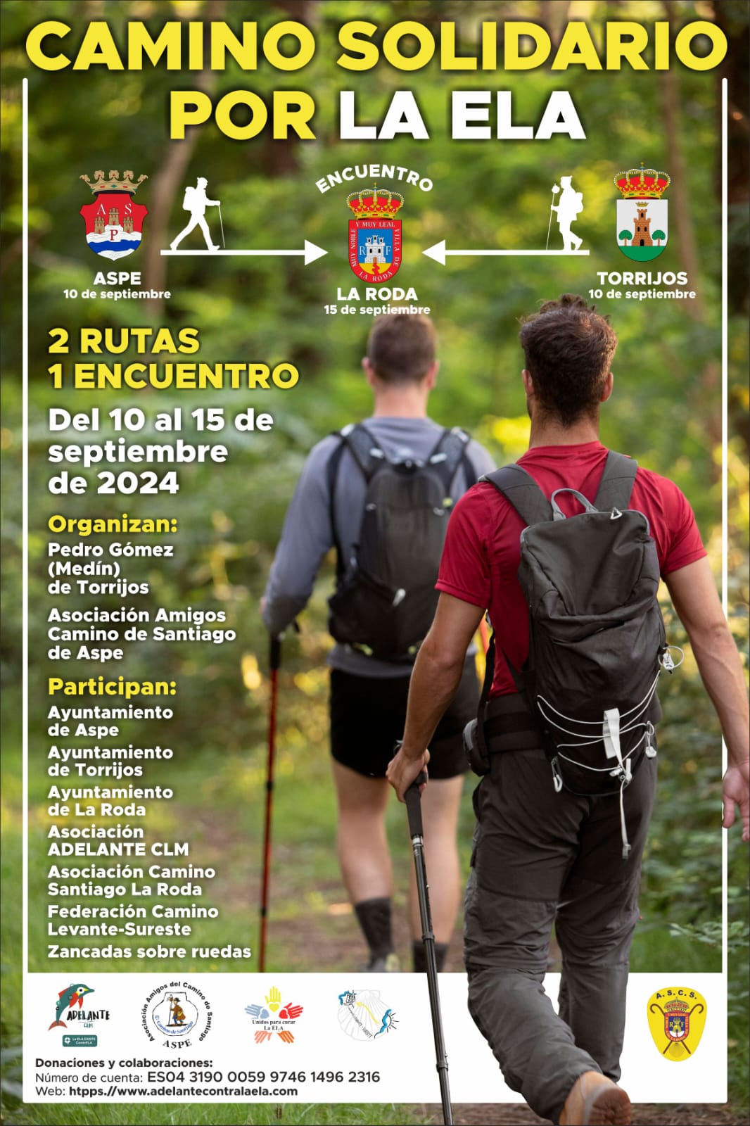 🚶♀️➡️👨🏻🦼➡️🚶👨🏻🦼Entre los días 10 y 15 de septiembre del 2024, dos grupos iniciarán a pie desde la localidad de Torrijos (Toledo) y desde la localidad de Aspe (Alicante), un camino por etapas que seguirá el itinerario del Camino de Santiago, terminando en La Roda (Albacete) 📍